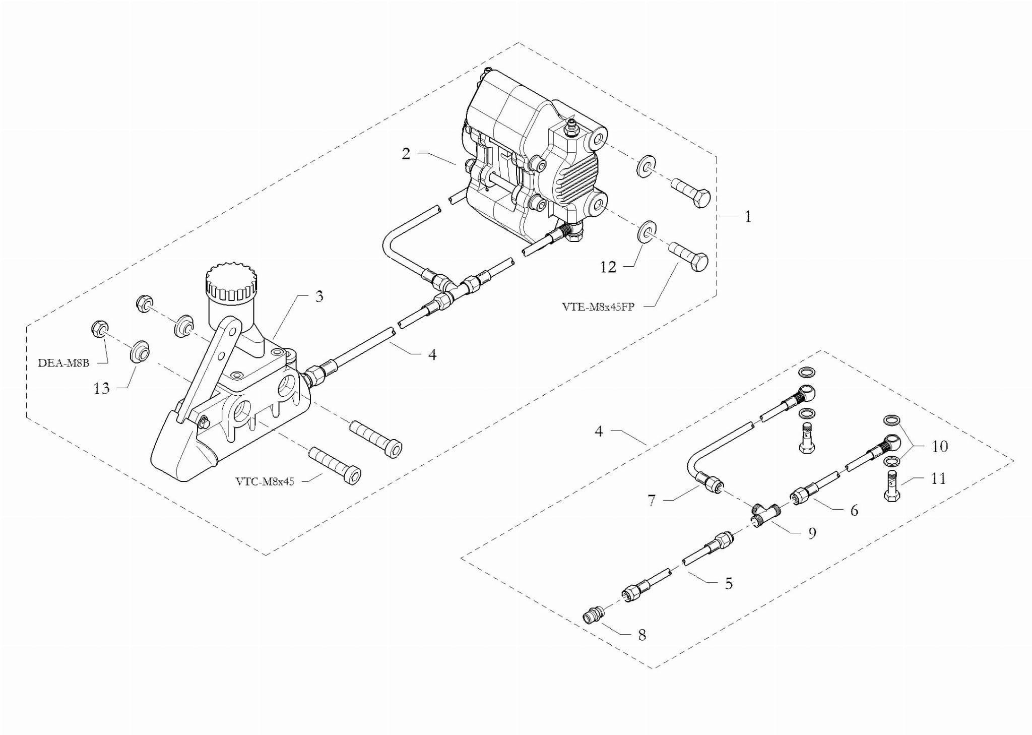 EASYKART 100 / 125 cc UKŁAD HAMULCOWY - SCHEMAT TECHNICZNY
