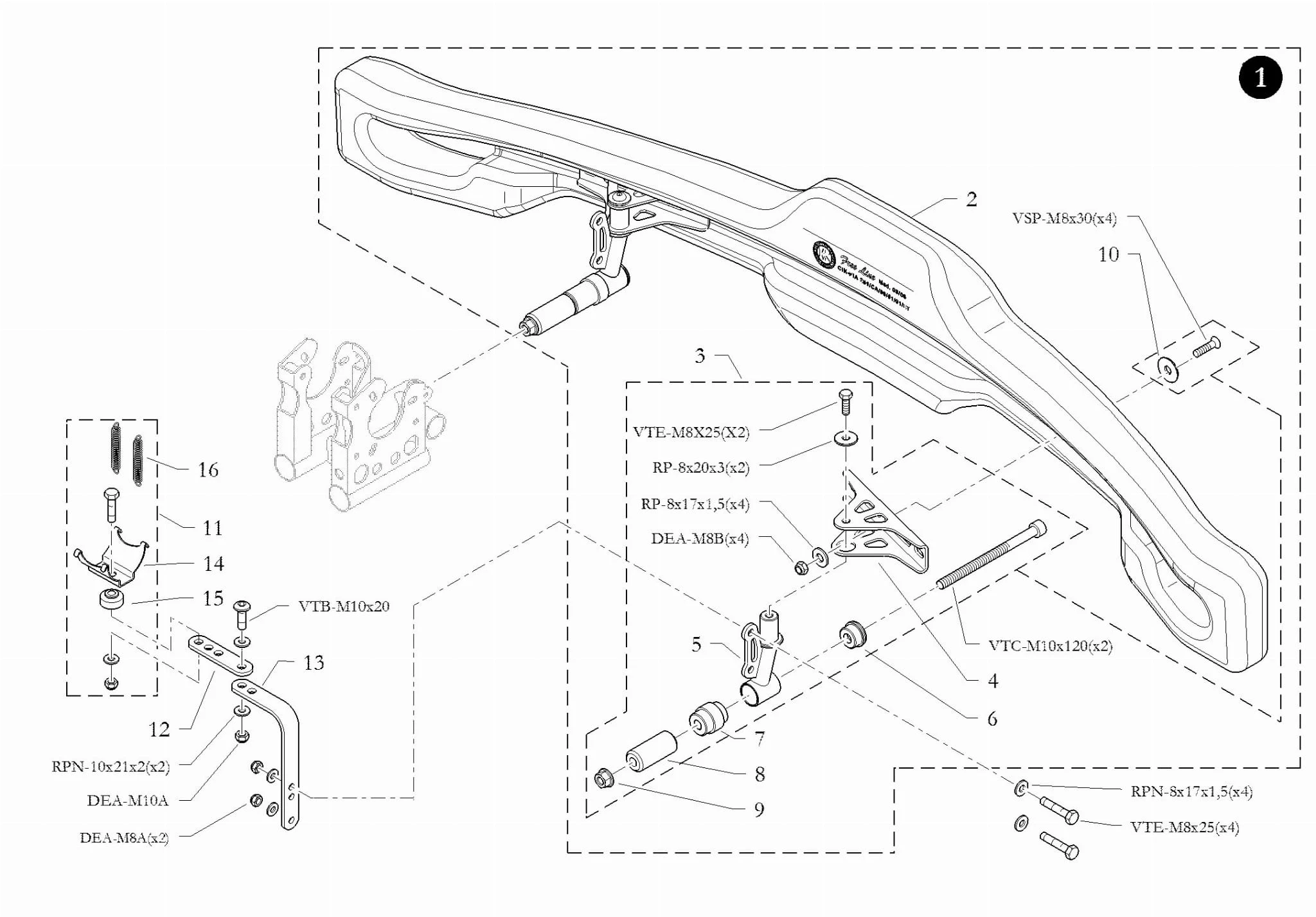 EASYKART 100 / 125 cc ZDERZAKI - SCHEMAT TECHNICZNY